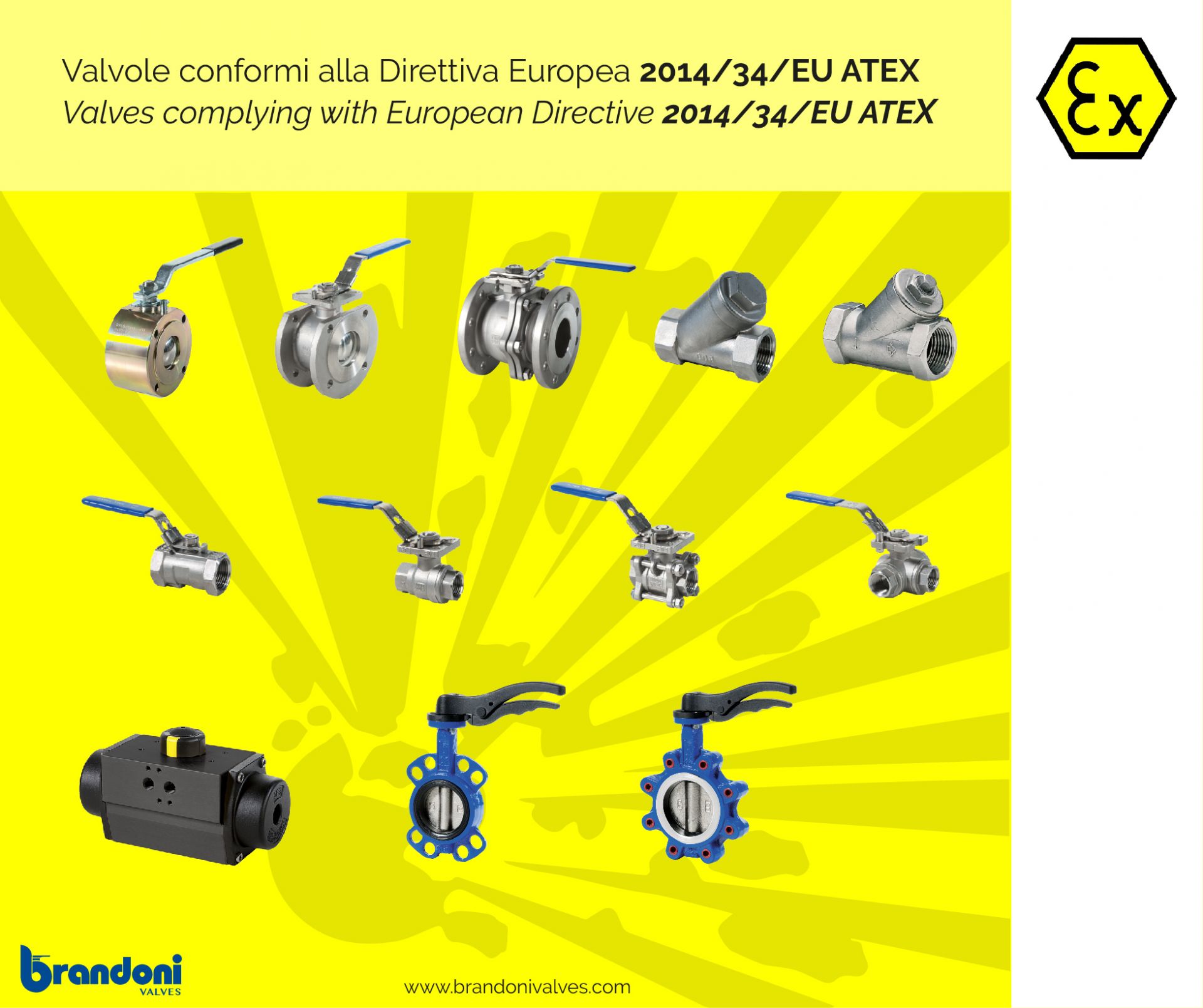 Some of our valves complying with European Directive 2014/34/EU ATEX, suitable for areas with explosion risk: